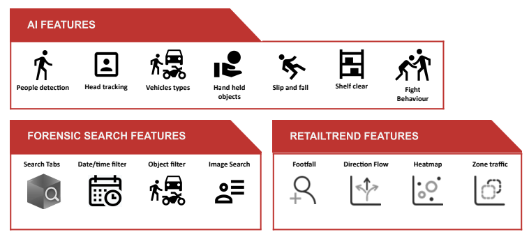 RetailTrend es nuestra herramienta de generación de informes empresariales que ingiere datos de VCAserver y muestra recuentos de visitantes, compromiso, mapas de calor y mucho más a través de la interfaz de usuario basada en navegador, ya sea en las instalaciones o en la nube. VCAforensics proporciona una herramienta de búsqueda de apariencia intuitiva que utiliza instantáneas, clips de vídeo y metadatos de VCAserver y ofrece la posibilidad de reproducir material grabado de plataformas VMS.