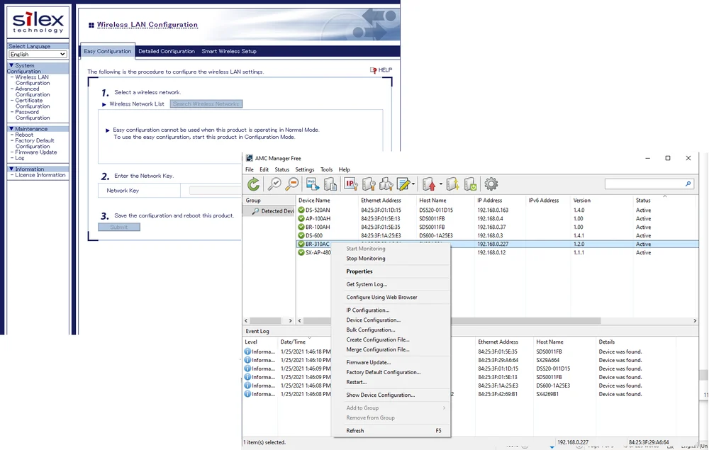 Configurar el BR-330AC-LP es rápido y sencillo gracias al sitio web de configuración integrado, la utilidad de kitting inicial o el AMC Manager®. Incluso si necesita una gama de configuraciones de dispositivos para instalar un número específico de BR-330AC-LP, Silex trabajará con usted para cumplir sus requisitos individuales.