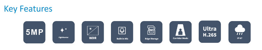 - High quality image with 5MP, 1/2.7"CMOS sensor
